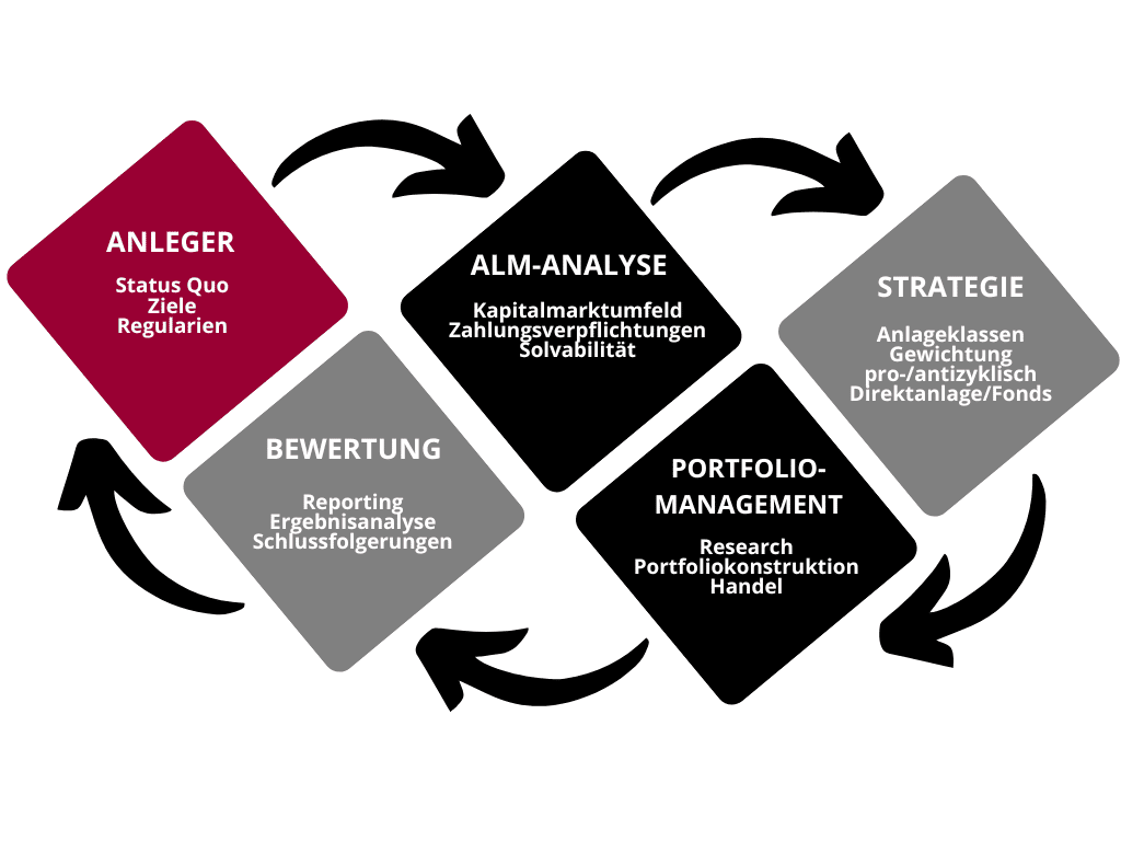 Unser Leistungsspektrum für institutionelle Kunden umfasst seit über 15 Jahren sowohl die strategische Kapitalanlageberatung als auch das Portfoliomanagement im Rahmen von Spezialfonds oder über ein Vermögensverwaltungsmandat in der Direktanlage (Depot).