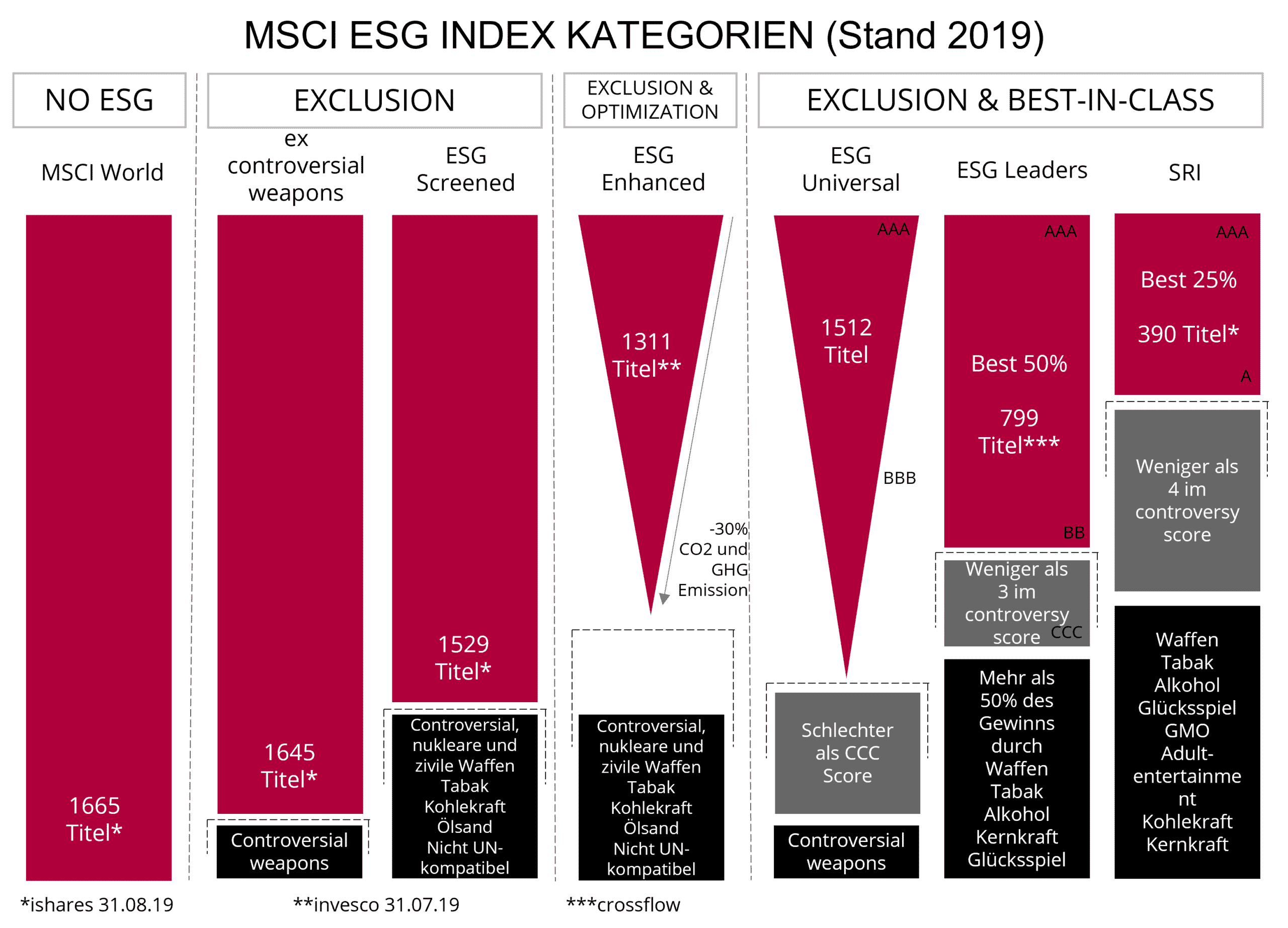 Natürlich ist die Implementierung dieser Vorgehensweise auch unter ESG-Aspekten realisierbar. Bei (fast) allen wichtigen und notwendigen Anlageklassen findet man im ETF-Segment nachhaltig ausgestaltete Varianten, die sich sehr gut in unser Gesamtkonzept integrieren lassen.